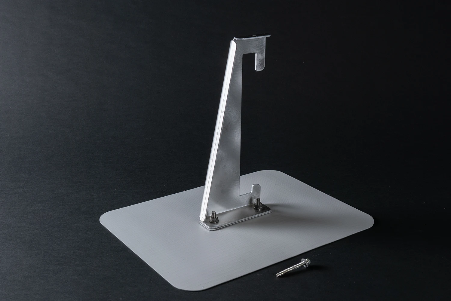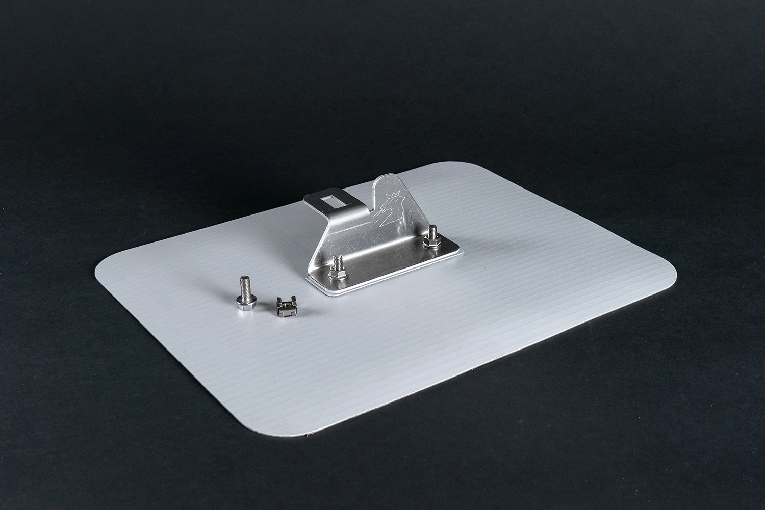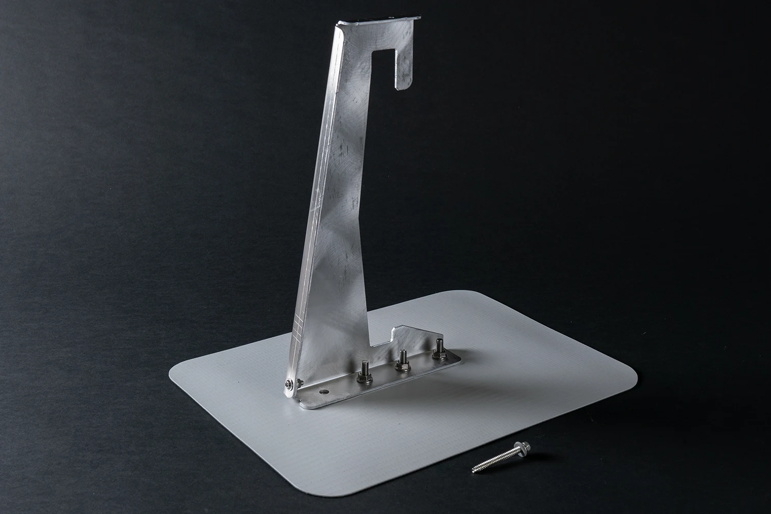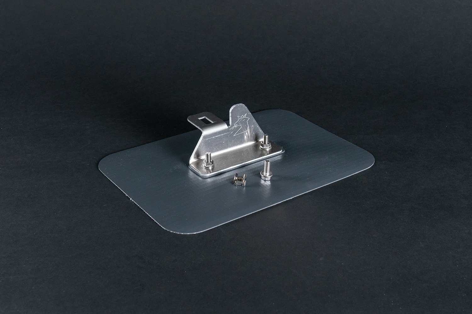 Halter und Grundplatte bestehen aus einem Aluminium 3mm Almg3 in blank oder pulverbeschichtet.