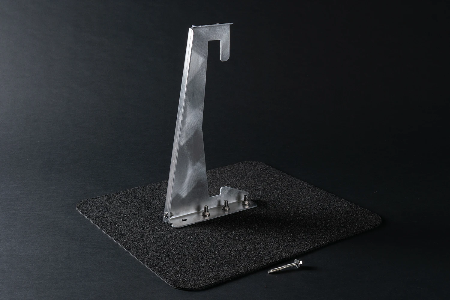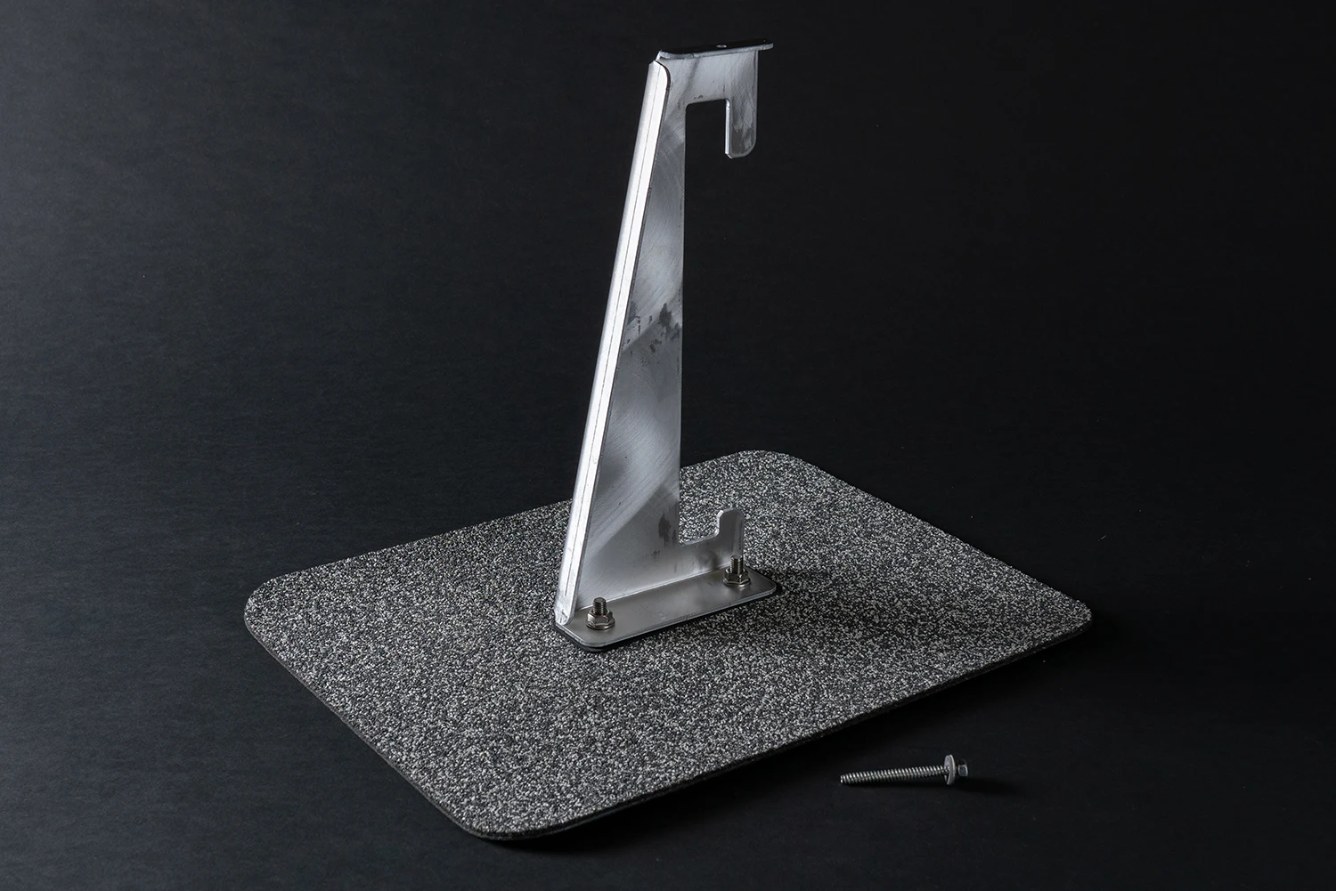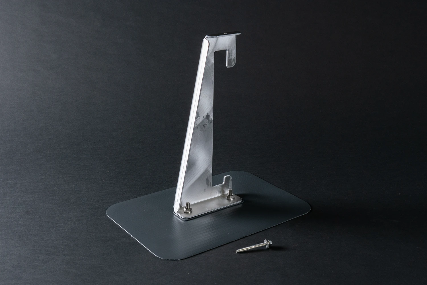 Halter und Grundplatte bestehen aus einem Aluminium 3mm Almg3 in blank oder pulverbeschichtet.