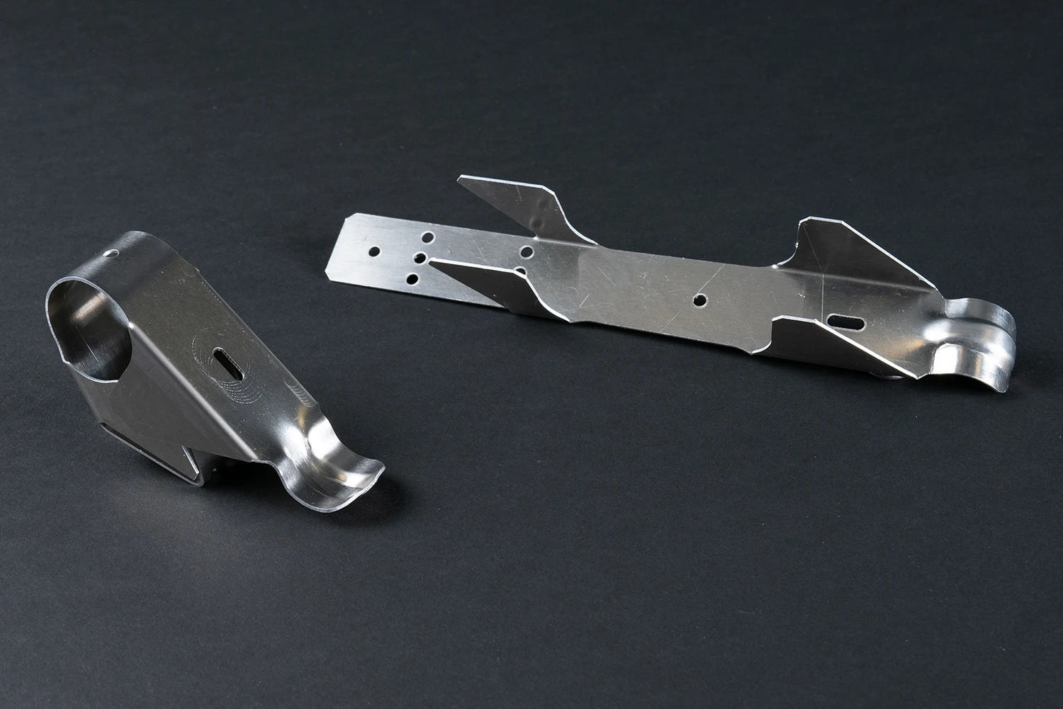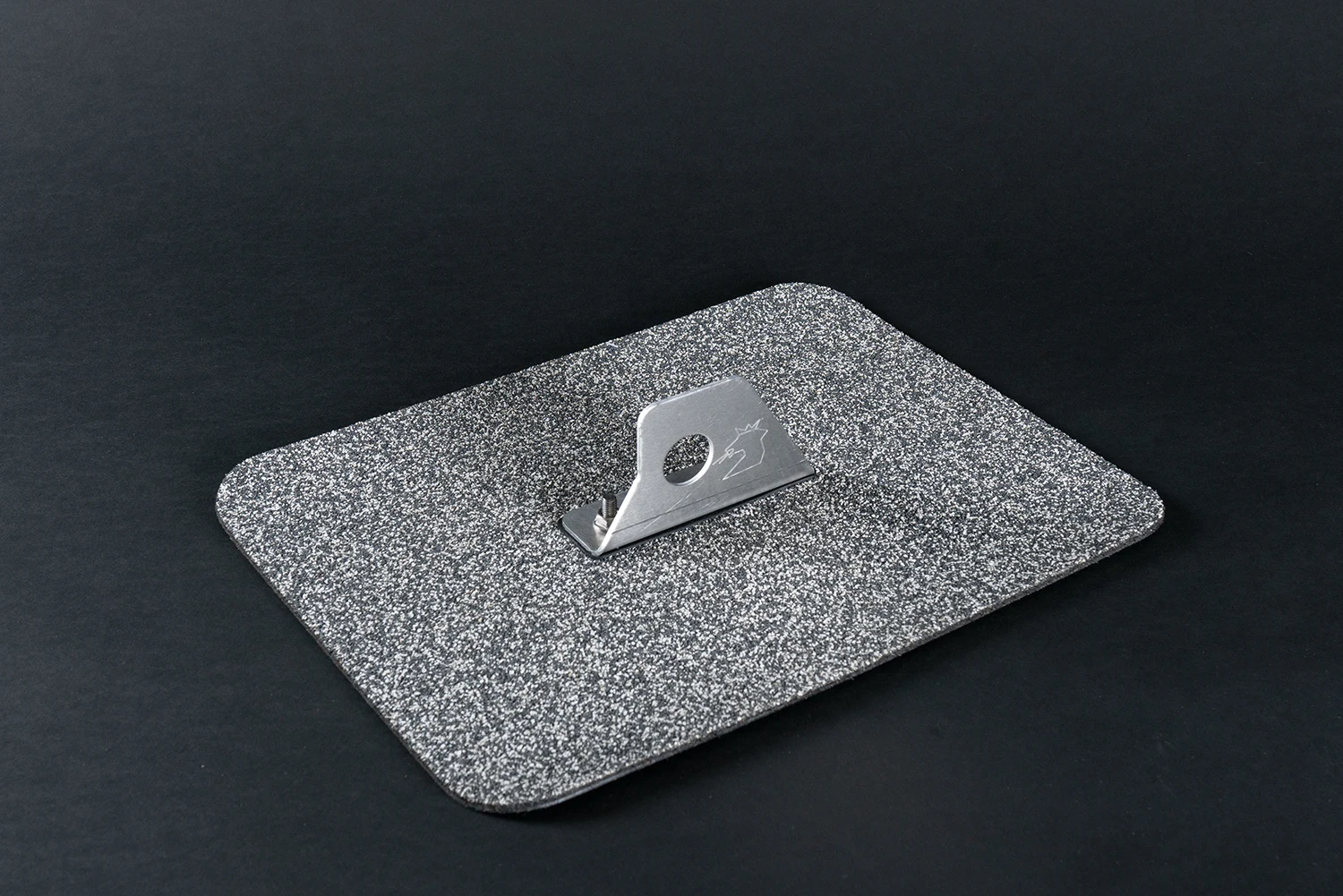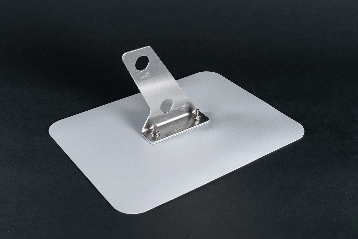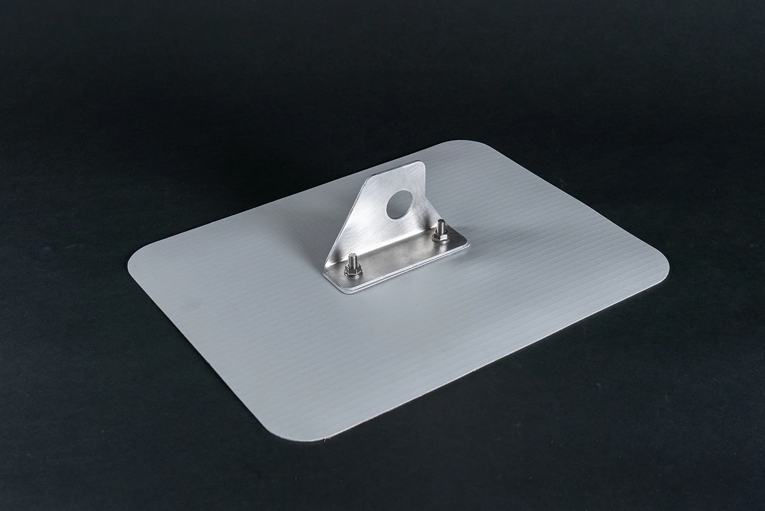 Halter und Grundplatte bestehen aus einem Aluminium 3mm Almg3 in blank oder pulverbeschichtet.