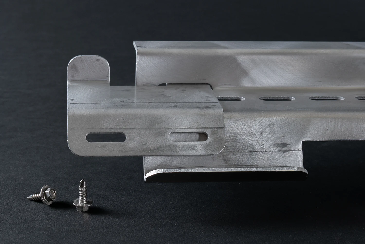 Die Schneeschiene und das Verbindungsstück bestehen aus Aluminium 3mm Almg3.