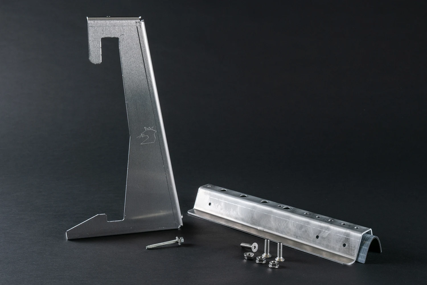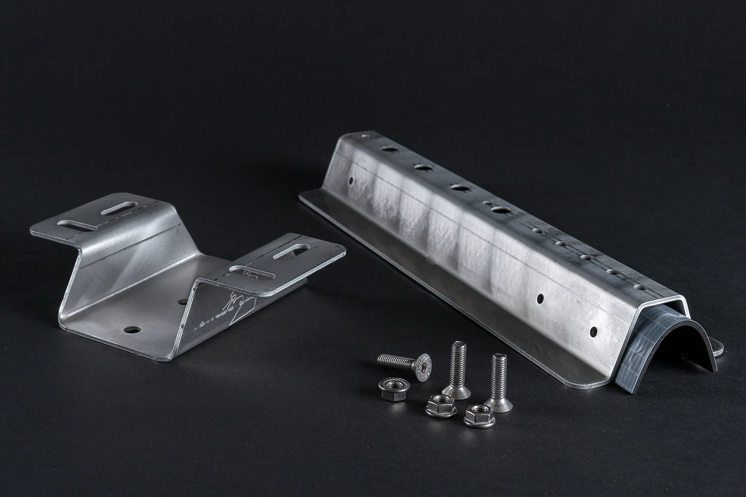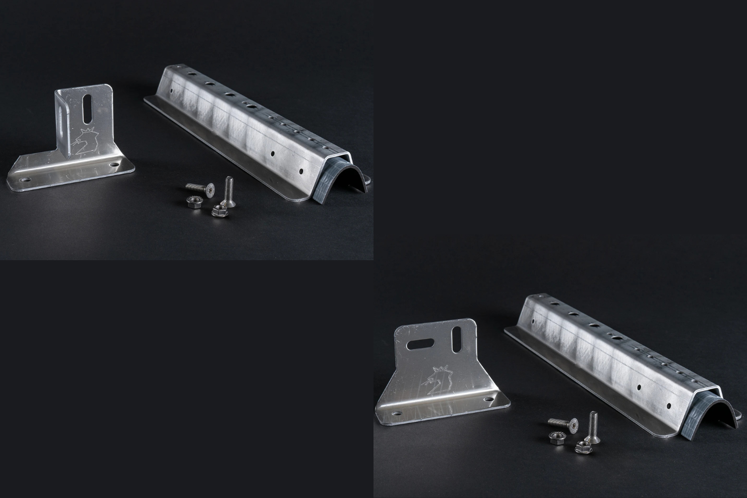 Aufnahmeschiene und Halter bestehen aus einem Aluminium 3mm Almg3 in blank.