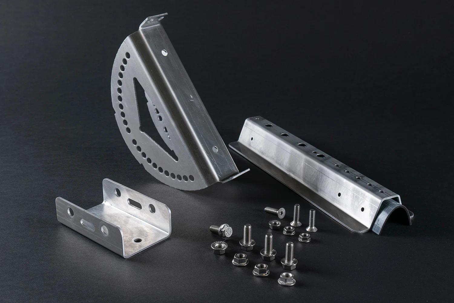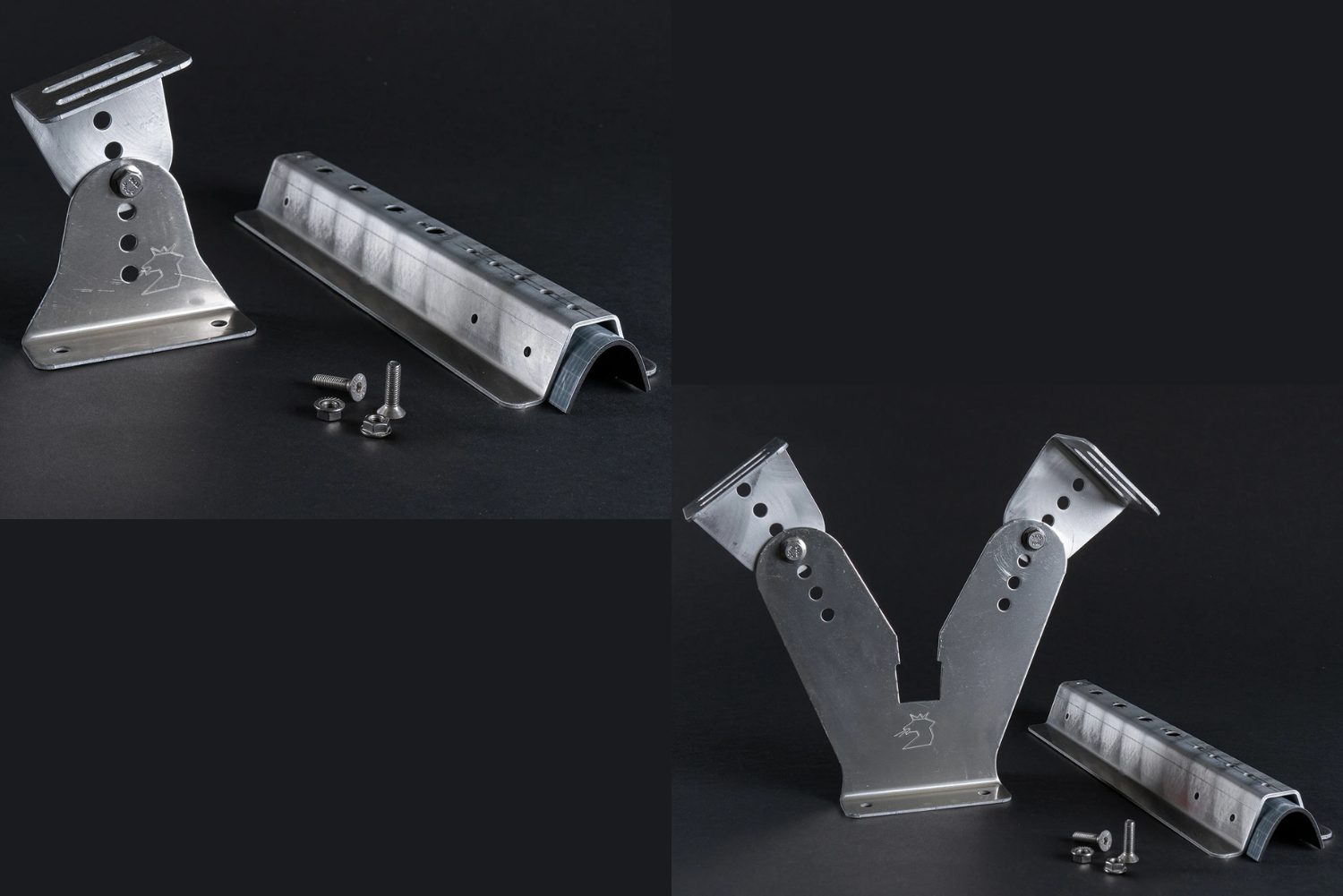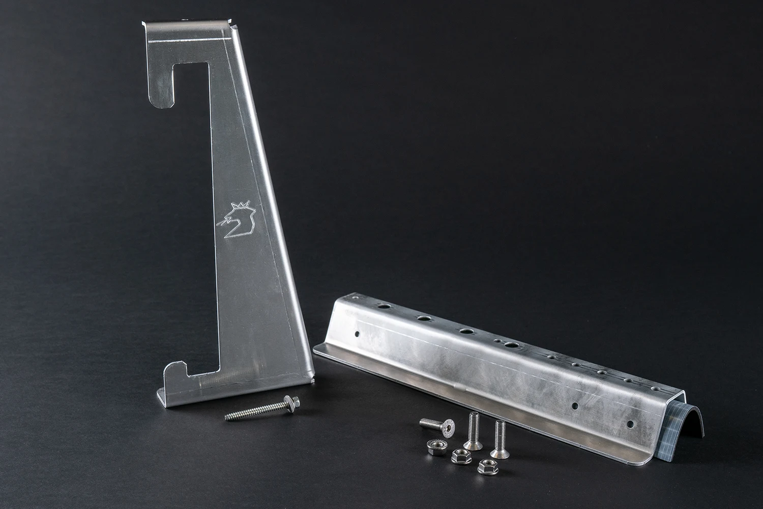 Aufnahmeschiene und Halter bestehen aus einem Aluminium 3mm Almg3 in blank.