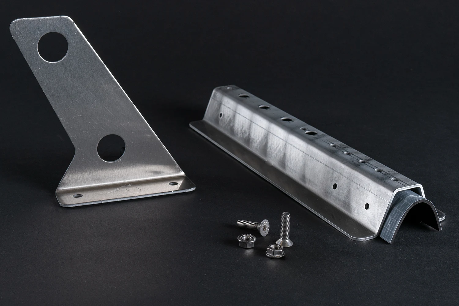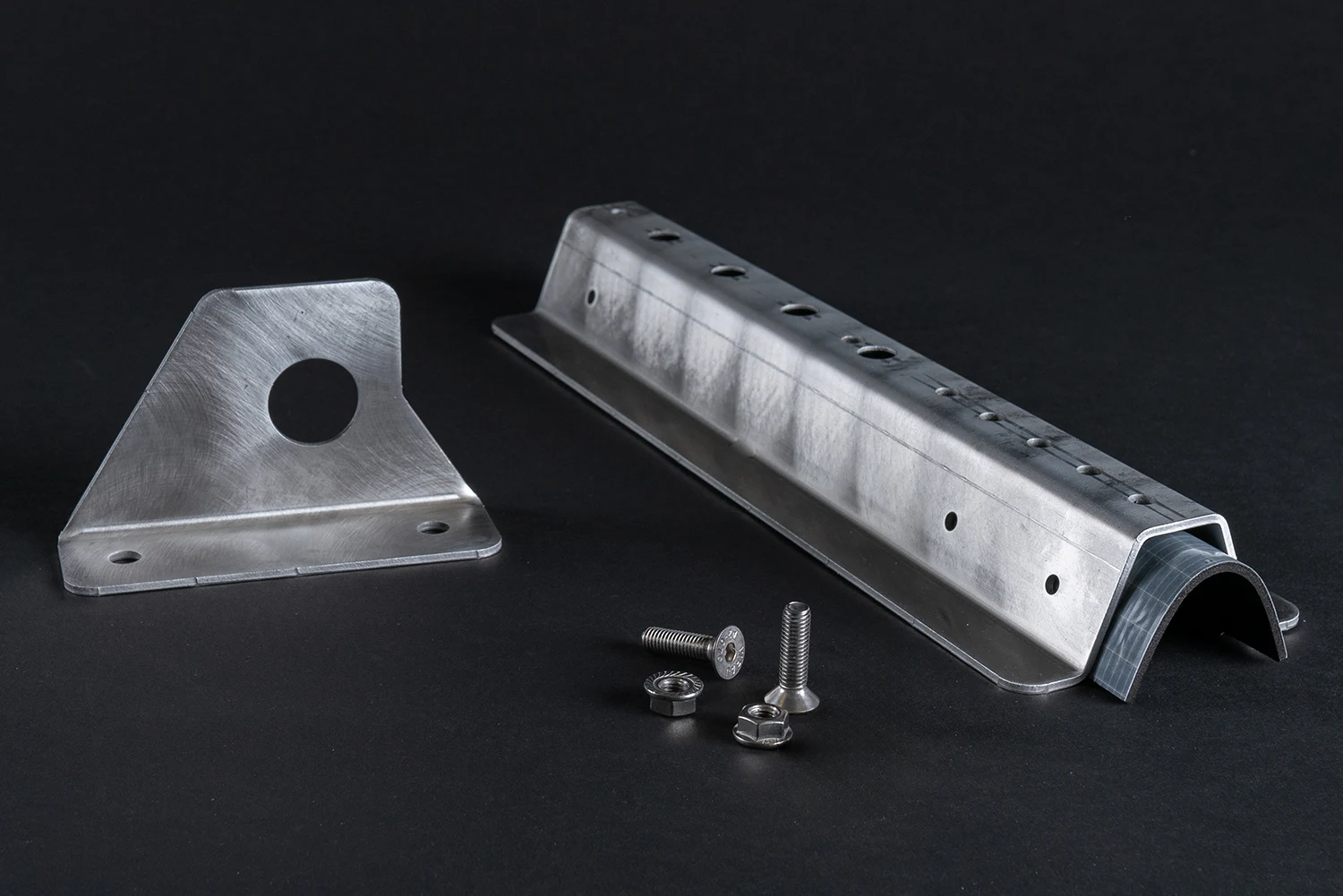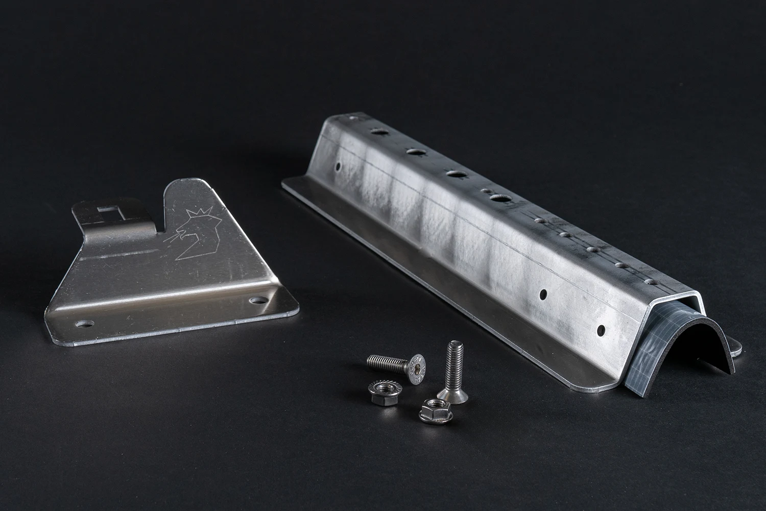 Der GSP Laufrosthalter besteht aus der Aufnahmeschiene dem Laufrostadapter und dem Laufrosthalter selbst. Diese sind drei voneinander getrennte Artikel, erst bei der Montage werden diese zusammengebaut und montiert. Für den Zusammenbau der Aufnahmeschiene und des Halters werden 3 Stück Senkkopfschraube mit 3 Stück Sperrzahnmutter und 4 Stück Sechskantschraube mit Sperrverzahnung sowie 4 Stück Sperrzahnmutter mitgeliefert. Für die optimale Abdichtung beinhaltet die Lieferung eine EPDM Zellkautschuk Dichtung.