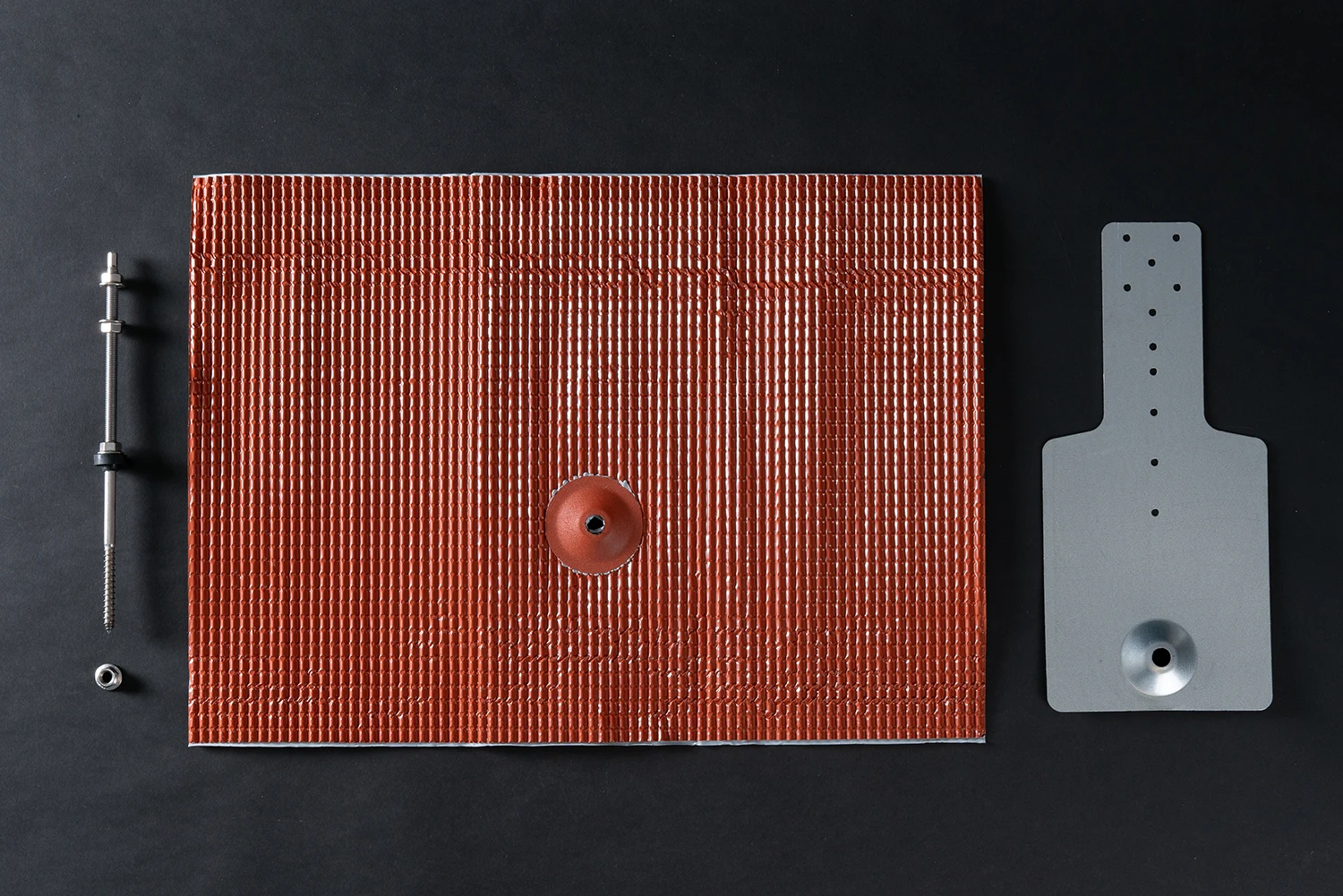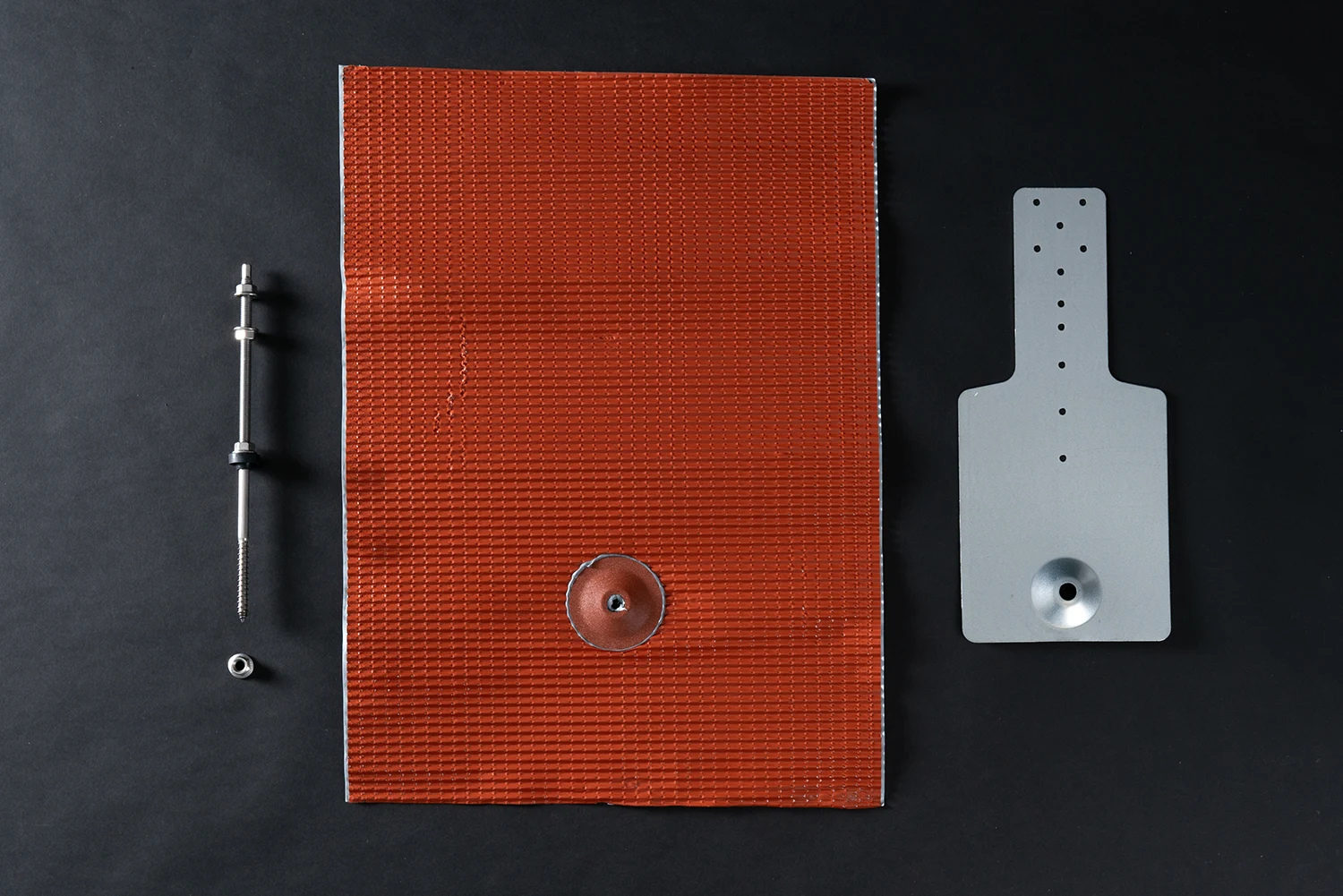 GSS Solarblech wellig besteht aus einer Alu-Flex-Grundmanschette mit selbstklebender Butylschicht und einer Stockschraube aus Edelstahl.