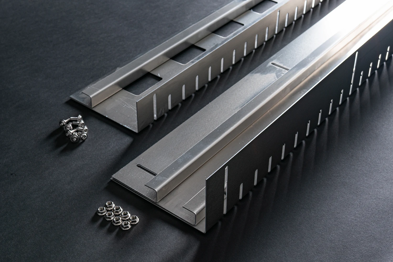 Der Lieferumfang beinhaltet bei Höhe 60-95mm eine Grundleiste und einer Aufstockleiste mit 8 Stück Flachkopfschraube Edelstahl und 8 Stück Sperrkantmutter Edelstahl. Bei der Höhe 95-210mm ist eine Grundleiste und zwei Aufstockleisten dabei. mit 8 Stück Flachkopfschraube Edelstahl und 8 Stück Sperrkantmutter Edelstahl.